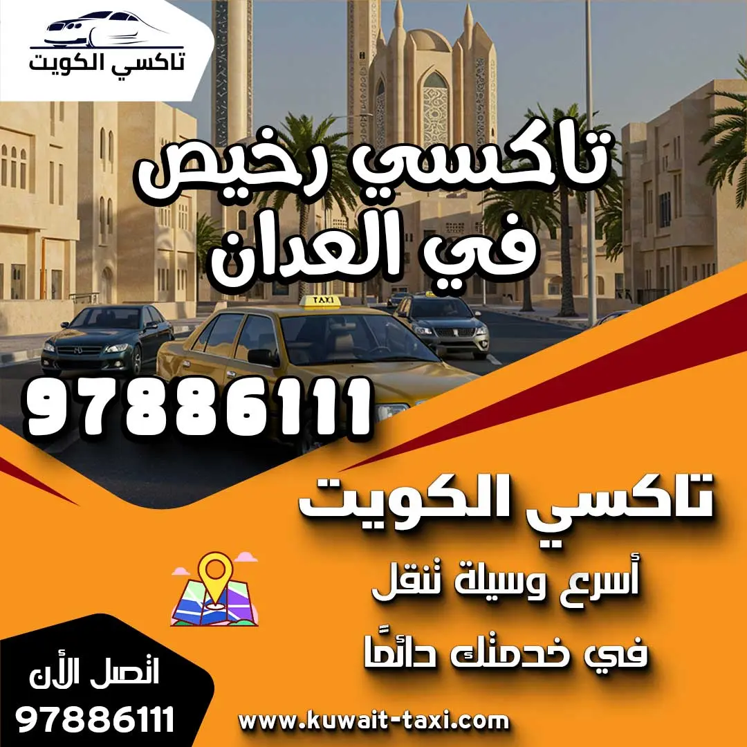 أفضل طريقة للعثور على تاكسي رخيص في العدان هي عبر التواصل المباشر مع خدمات التاكسي المحلية التي توفر أسعارًا تنافسية وسائقين على دراية تامة بالمنطقة. نعم، يمكن ضمان الحصول على خدمة سريعة وموثوقة من خلال الاتصال بشركة تاكسي الكويت على الرقم 97886111، تاكسي رخيص في العدان التي تقدم تغطية شاملة لجميع مناطق محافظة مبارك الكبير بأسعار اقتصادية.
